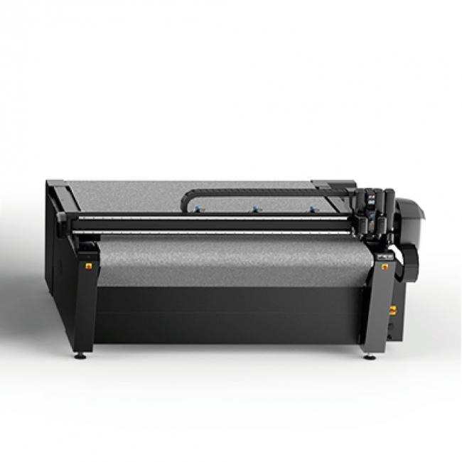 La F1612 est équipée en standard d'un module trainant et d'OPOS-CAM, le système de repérage optique par caméra, permettant un détourage rapide et très précis d'impressions réalisées sur des supports flexibles ou rigides.Les pinces pneumatiques maintiennent le média pendant l'avance, permettant ainsi la découpe en continu de travaux multiples et plus longs que la table. Le dérouleur automatique, muni de flasques, assure l'alignement des matériaux pour un déroulement parfait. Grâce au convoyeur, l'alimentation du matériel pour la découpe pleine-chair est également assurée.